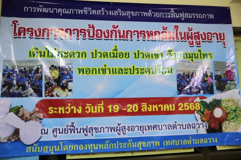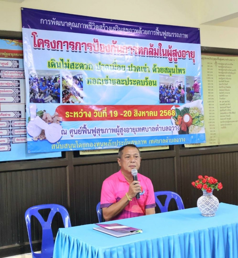- วันนี้ (19 สิงหาคม 2568) นายสุทธิพันธ์ ฤทธิรุตม์ นายกเทศมนตรีตำบลฉวาง พร้อมด้วยปลัดเทศบาล รองปลัดเทศบาล หัวหน้าส่วนราชการ พนักงานและเจ้าหน้าที่เทศบาลตำบลฉวาง ดำเนินการร่วมเปิดโครงการป้องกันการหกล้มในผู้สูงอายุ เดินไม่สะดวก ปวดเมิ่อย ปวดเข่า ด้วยสมุนไพรพอกเข่าและประคบร้อน ซึ่งจัดโดยชมรมผู้สูงอายุ เทศบาลตำบลฉวาง ได้รับการสนับสนุนงบประมาณโดยกองทุนหลักประกันสุขภาพเทศบาลตำบลฉวาง ณ ศูนย์ฟื้นฟูสุขภาพผู้สูงอายุ เทศบาลตำบลฉวาง