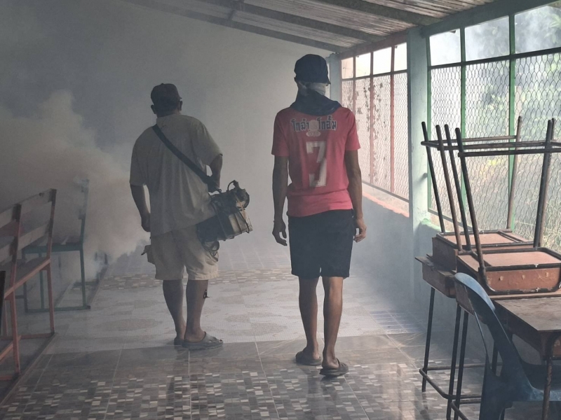- วันนี้ (3 พฤศจิกายน 2568) นายสุทธิพันธ์ ฤทธิรุตม์ นายกเทศมนตรีตำบลฉวาง พร้อมด้วยคณะผู้บริหาร มอบหมายให้ผอ.กองสาธารณสุขฯ พนักงานและเจ้าหน้าที่เทศบาลตำบลฉวาง ออกดำเนินการฉีดพ่นหมอกควันเพื่อกำจัดยุงลาย และการกำจัดแหล่งเพาะพันธ์ยุงลายที่เป็นพาหะนำเชื้อโรคไข้เลือดออกมาแพร่ระบาดสู่คน ณ โรงเรียนวังม่วงวิทยา
