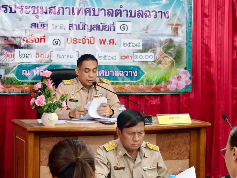 - วันนี้ (23 ธันวาคม 2568) เวลา 10.00 น. ณ ห้องประชุมสภาเทศบาลตำบลฉวาง อำเภอฉวาง จังหวัดนครศรีธรรมราช นายอัษฎา ณ นคร ประธานสภาเทศบาลตำบลฉวาง เป็นประธานในการประชุมสภาเทศบาลตำบลฉวาง สมัยวิสามัญ สมัยที่ 1 ครั้งที่ 1 ประจำปี 2568 โดยมีนายธรรมศักดิ์ ภูมิสาร รองนายกเทศมนตรี รักษาราชการแทนนายกเทศมนตรีตำบลฉวาง พร้อมด้วยคณะผู้บริหารเทศบาล สมาชิกสภาเทศบาล หัวหน้าส่วนราชการ และเจ้าหน้าที่ที่เกี่ยวข้อง เข้าร่วมการประชุมในครั้งนี้ ซึ่งมีระเบียบวาระในการประชุมเพื่อให้สภาเทศบาลตำบลฉวาง พิจารณา ดังนี้