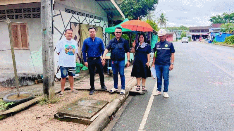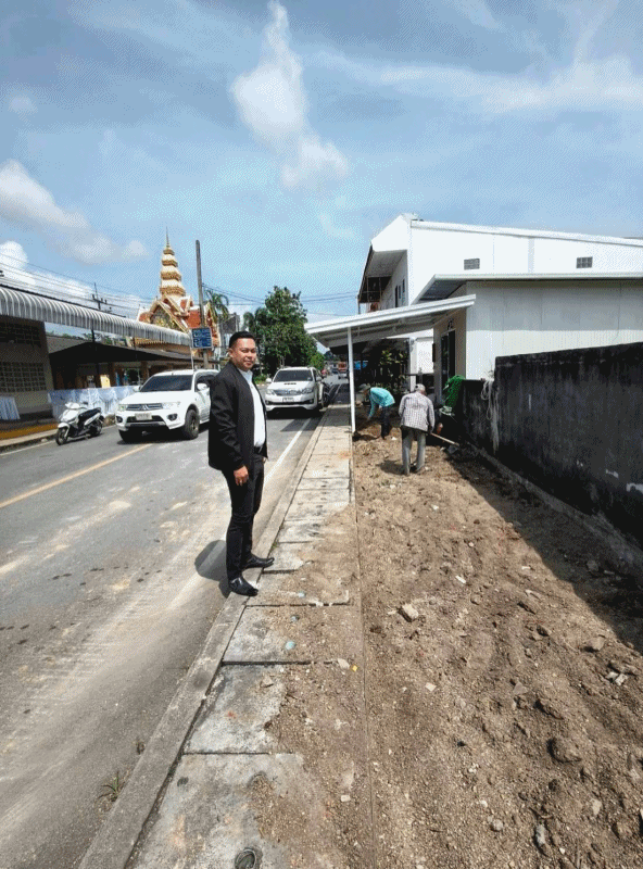 เทศบาลตำบลฉวาง ลงพื้นที่ตรวจสอบทางเท้าถนนตลาดนัดวั...