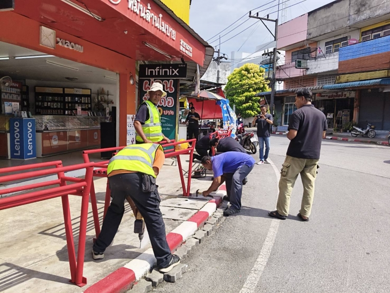 #เทศบาลตำบลฉวาง ลงพื้นที่ติดตั้งราวฟุตบาท